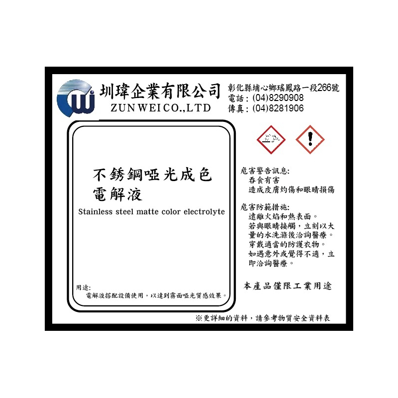 不锈钢哑光成色电解液 1L